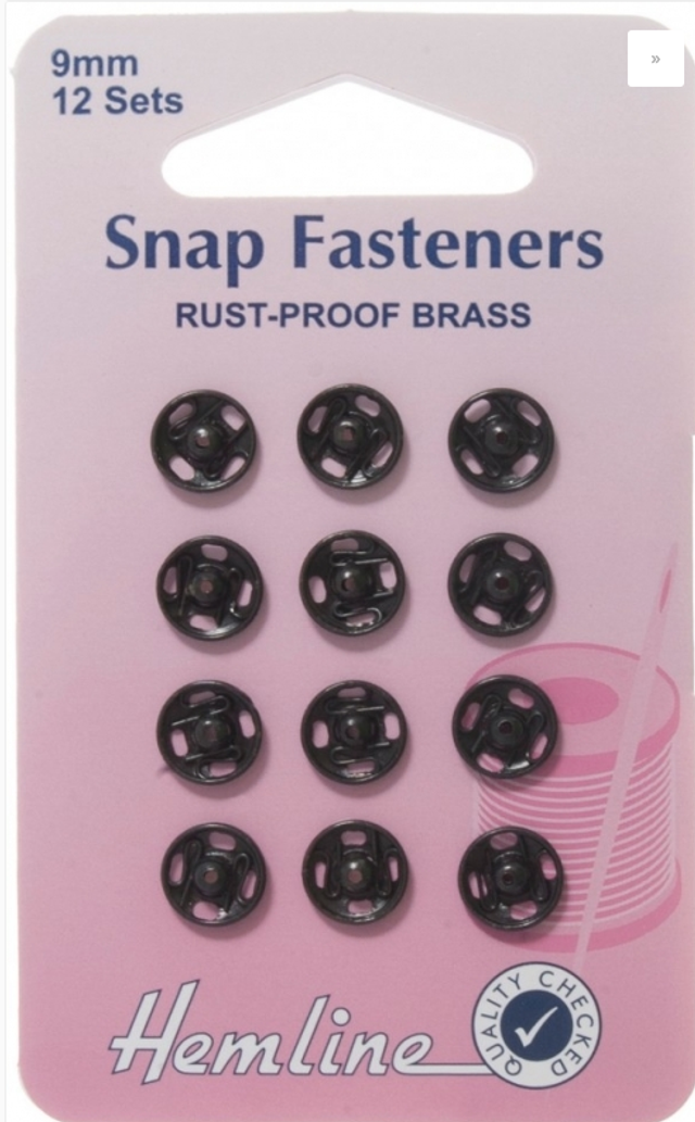 Hemline 9 mm Rust-proof Black Brass Snap Fasteners, 12 sets