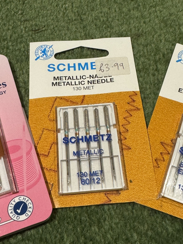 We need to maintain a healthy supply of sewing machine needles for workshops and projects so it's only sensible we help you to as well. Many sewing machines issues are down to an old needle. Most sewists don't seem to know that you are supposed to change the needle with every 8 hours of sewing completed. Like other sharps they dull with use. If they hit a pin, they are prone to tiny dinks and weaken. Regular refreshing reduces the risk of one breaking in your work, or worse, flying at you as it snaps. Using the right needle for your fabric and thread also greatly improves both the finished item and the sewing experience. Its a relatively boring thing to buy, but a true foundation to a positive experience! Schmetz needles in particular are very reliable, and we find, a totally worthy investment.