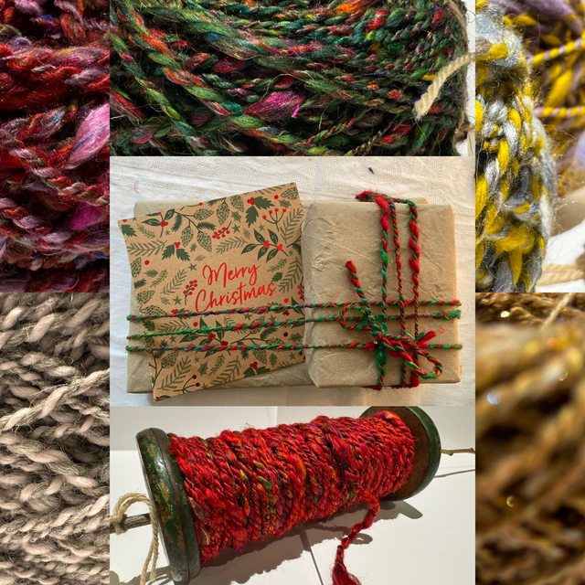 Wonderfully Chunky & Slubby Sari Silk Yarn for Sustainable Gift Ribbon